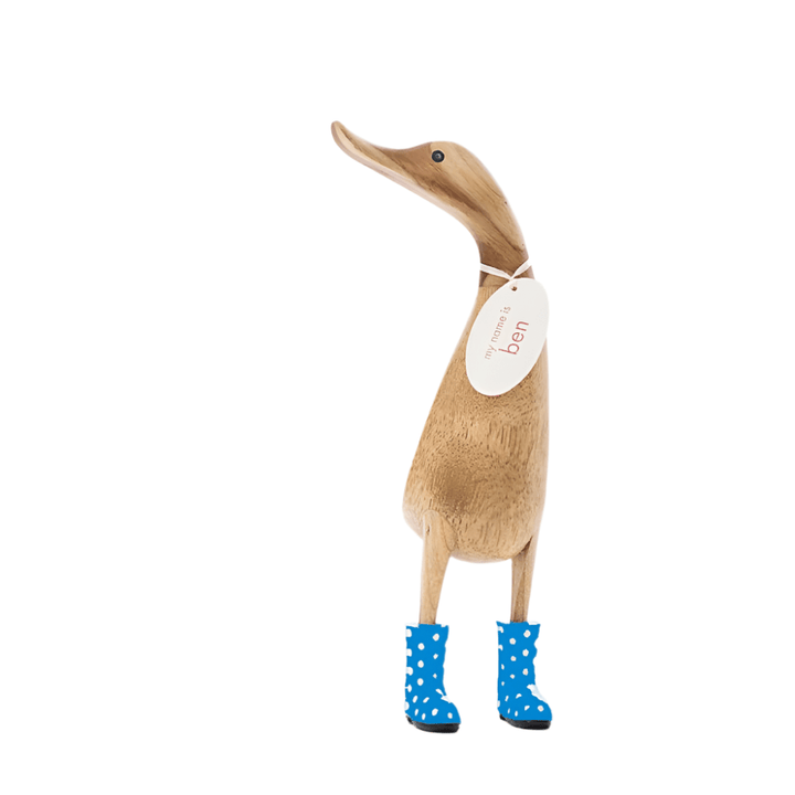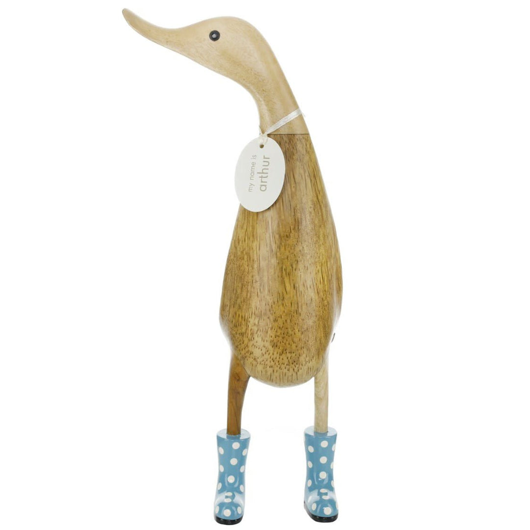 Large Wooden Duck In Blue & White Spotty Wellies2 - Duck Barn Interiors
