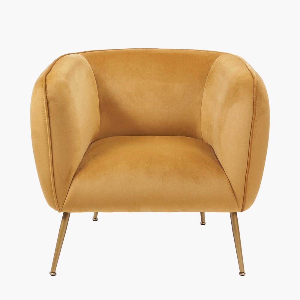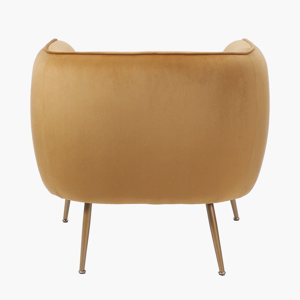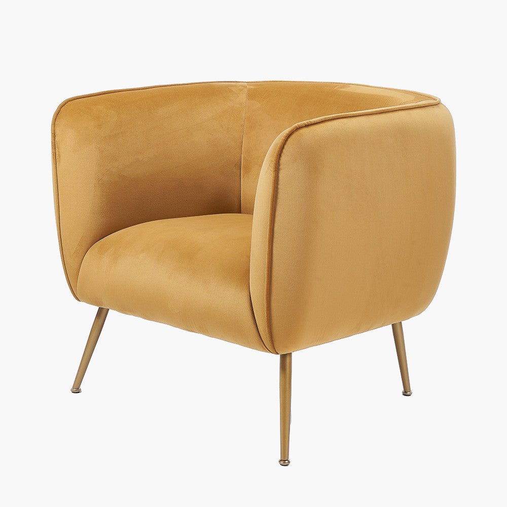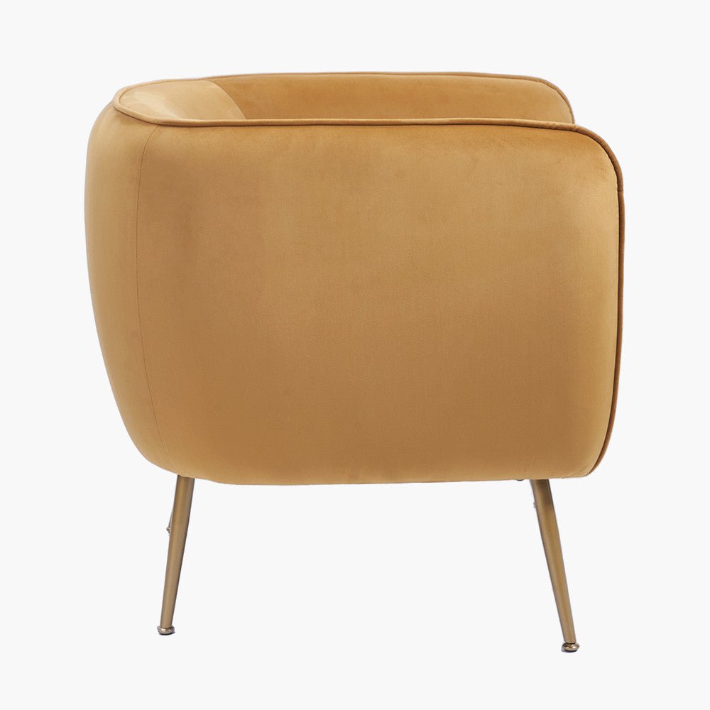 This accent gold chair is perfect for a bedroom, living room or landing space. Its gold velvet upholstery offers a plush feel. The gold legs provide a contemporary and stylish design.