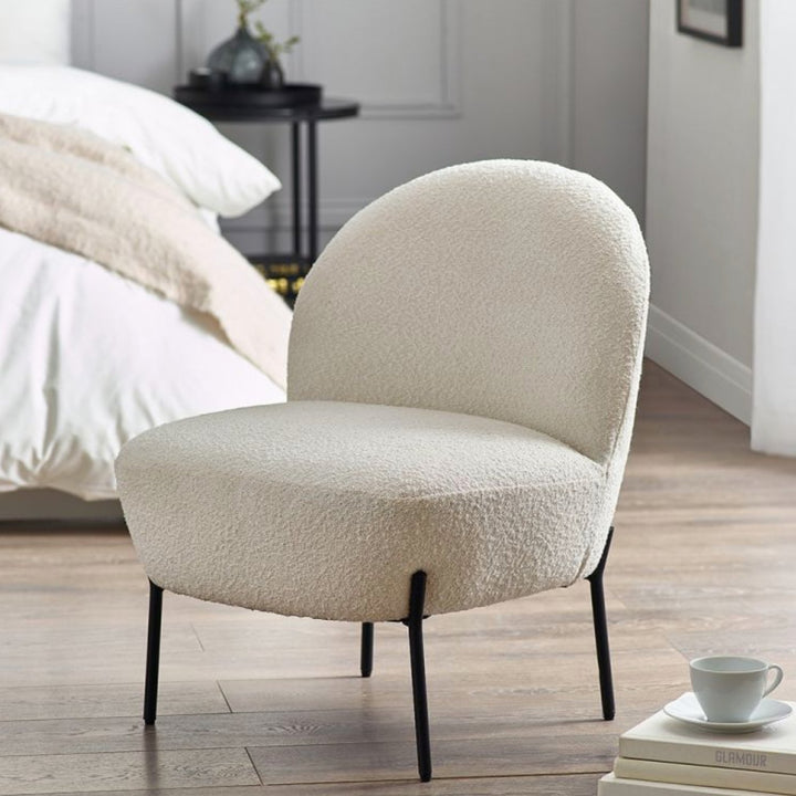 This Lulu accent ivory tub chair is perfect for a bedroom. Its ivory boucle loop upholstery offers a crisp simple design. The contrasting black legs provide a contemporary twist and it's perfectly on trend.