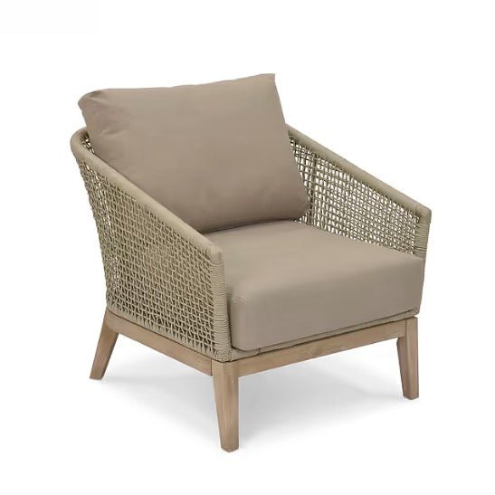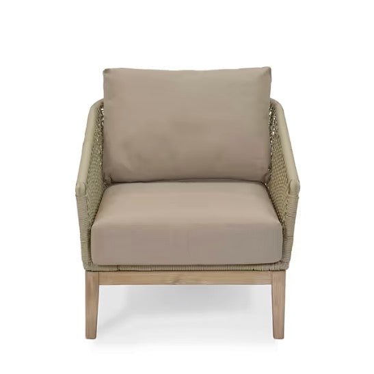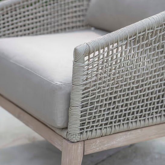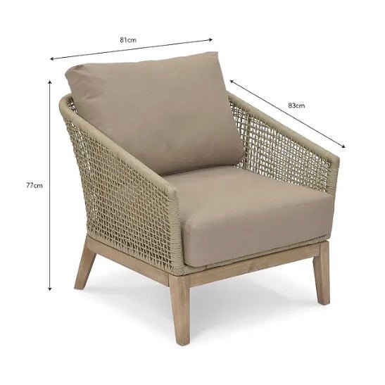 Enhance your outdoor living space with our Lynton Armchair in elegant grey. Perfect for lounging on a summer day, this chair comes with a comfortable seat pad and cushion and pairs perfectly with other pieces from our Lynton range. Made of acacia wood, it's sure to elevate your al fresco entertaining with style and durability. Complete the look with our Lynton Round Coffee Table and Lynton Round Side Table.