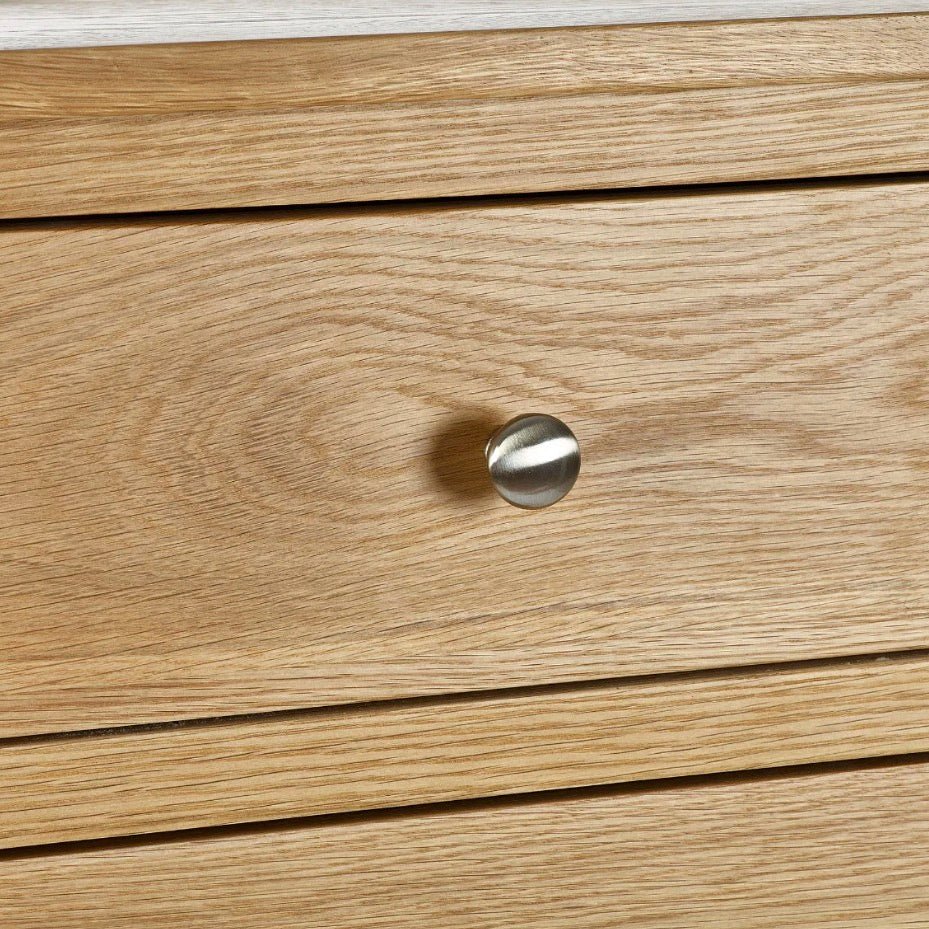 The Mallory Tallboy Chest of Drawers has plenty of storage with its 7 drawers. Crafted from solid oak and oak veneers, the timeless oak finish means each item is designed to add traditional style to your home. Finished with round silver knob handles it will suit any bedroom space.
