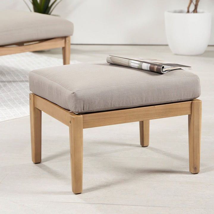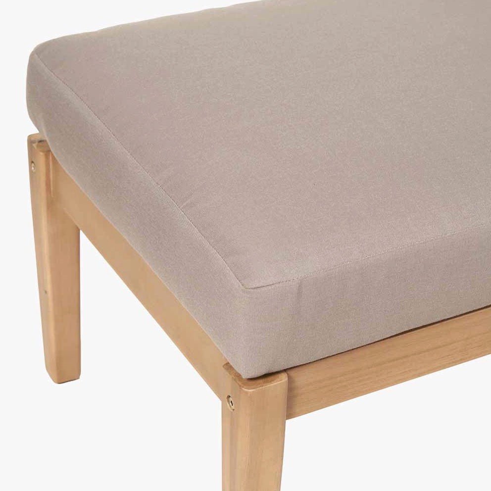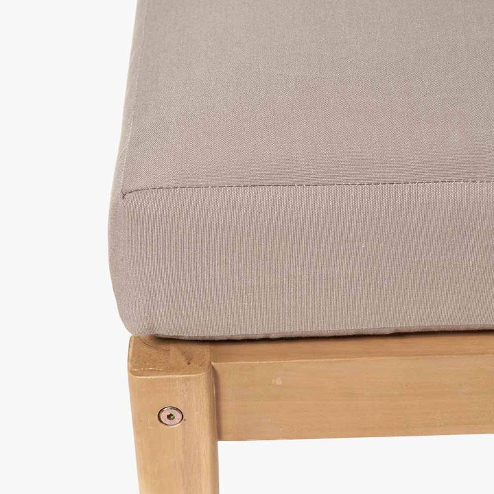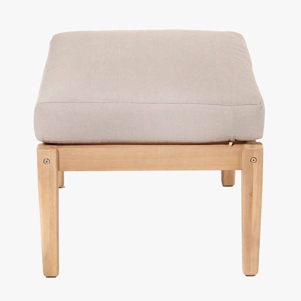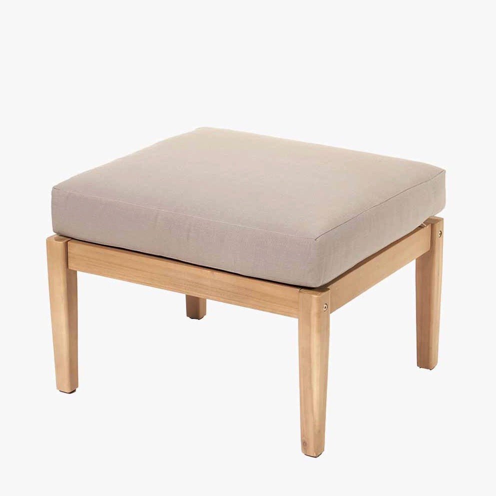 The Malta Footstool complements our furniture collections and makes a practical addition on its own. The Acacia Wood frame is finished in a Light Teak hue, while the cushion features Light Linen Taupe fabric. It can serve as both a comfortable extra seat and a footstool, effortlessly transforming any chair into a lounging spot. Acacia wood is a sustainable option, as it is a fast-growing hardwood, and is also durable, making it ideal for outdoor furniture. The cushion is finished with our season proof technology, ensuring that this footstool is suitable for outdoor use.
