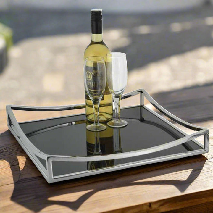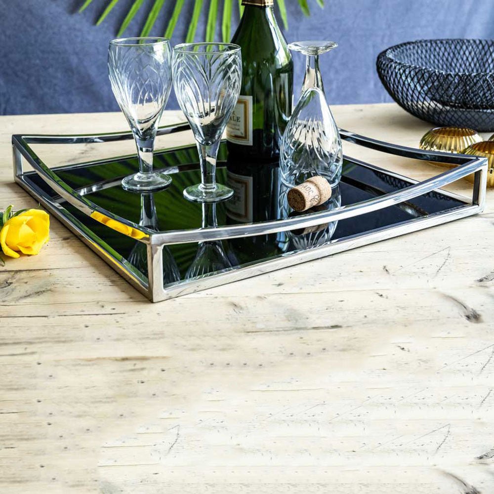 Obsidian Black Glass & Silver Square Tray2 - Duck Barn Interiors