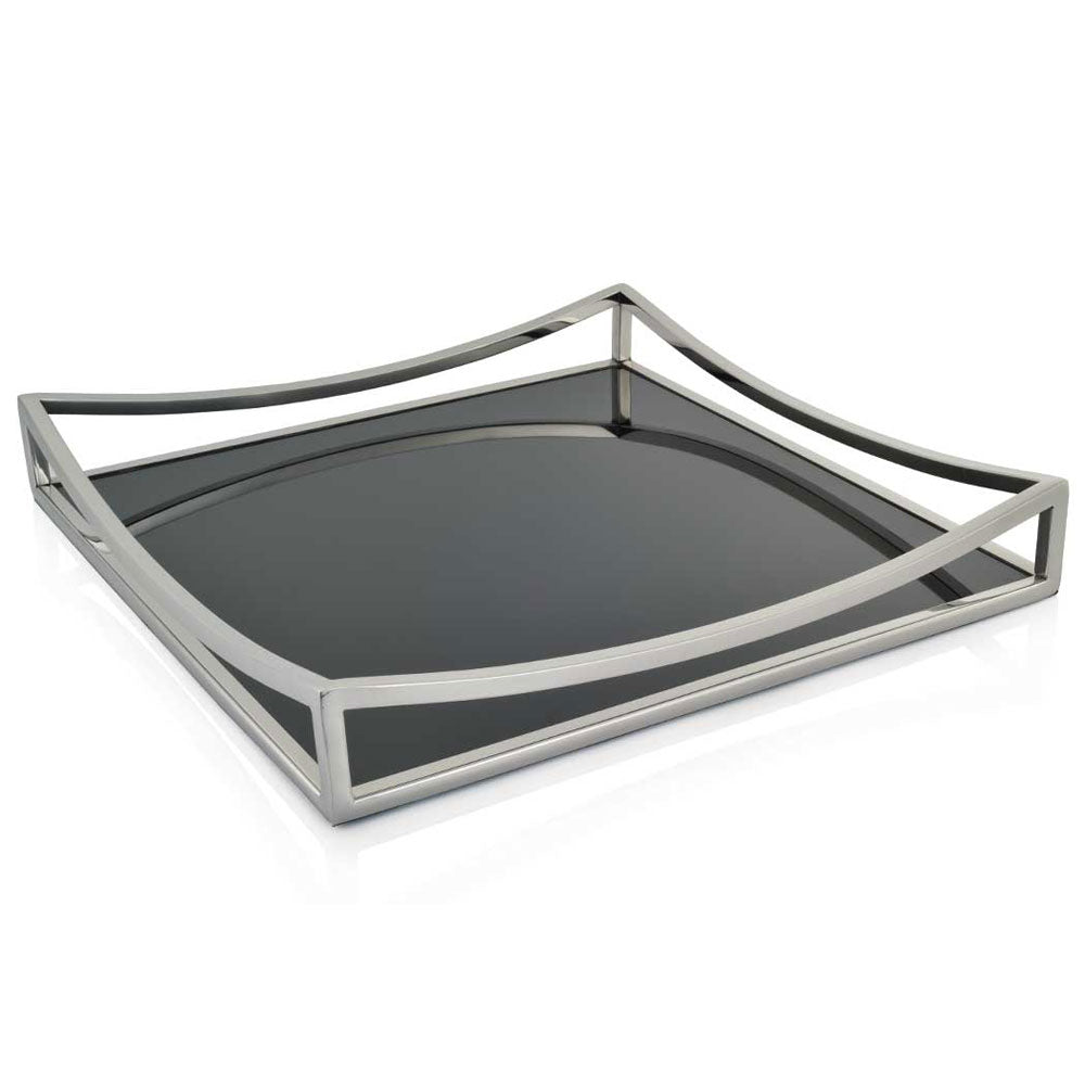 Obsidian Black Glass & Silver Square Tray