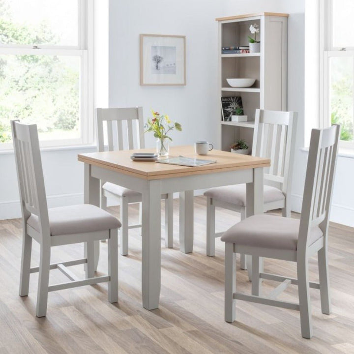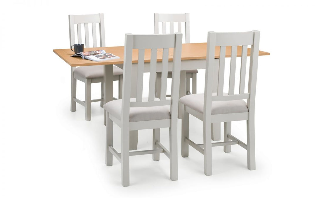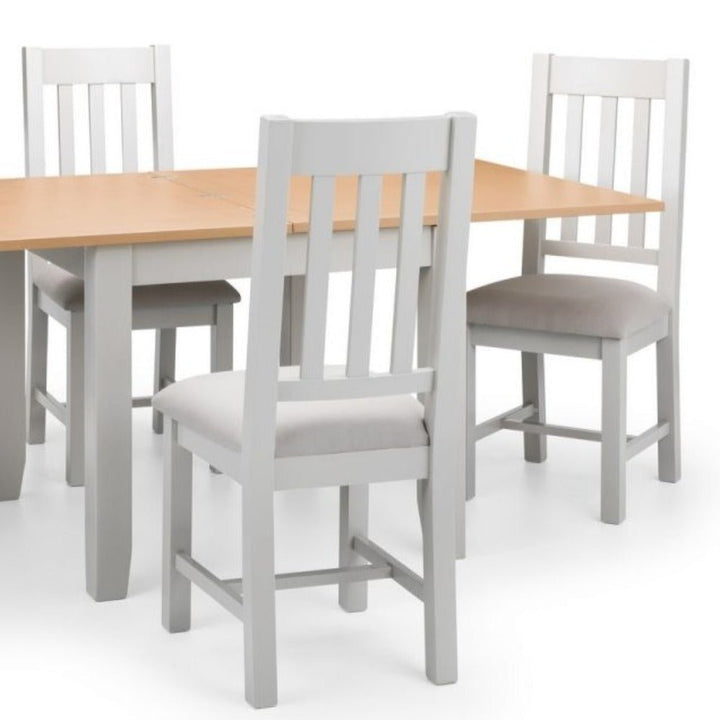 Enjoy the timeless style of our Richmond range by Julian Bowen with elegant, classically styled dining chairs, presented in an immaculate painted, soft Elephant Grey finish with a comfortable padded seat upholstered in a chic pewter coloured linen fabric.