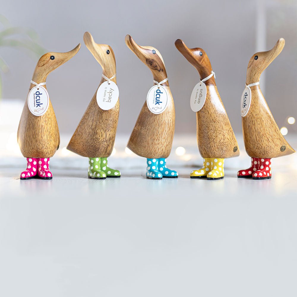 Wooden Duckling in Bright Pink and White Spotty Wellies4 - Duck Barn Interiors