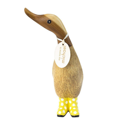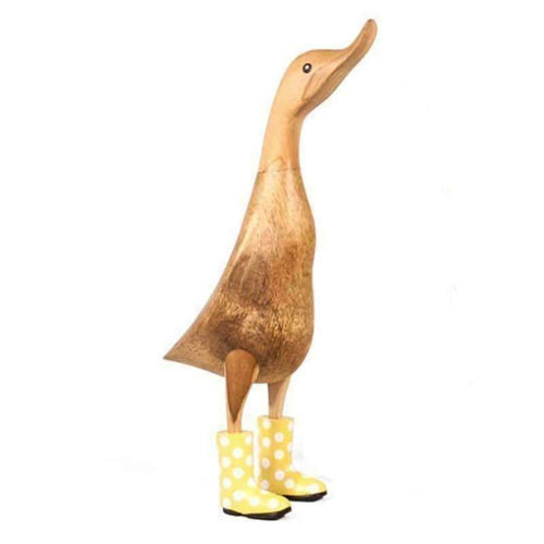 Wooden Ducky in Yellow and White Spotty Wellies1 - Duck Barn Interiors