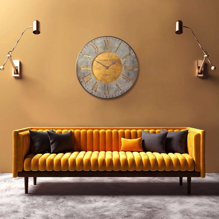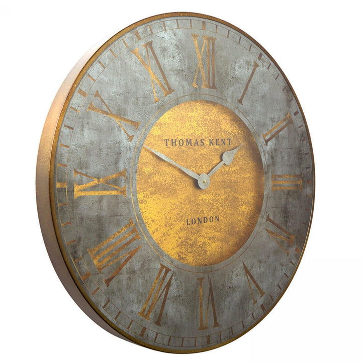 This striking Thomas Kent Florentine Grand Star Wall clock makes a statement with its large size. It has as stone effect printed on the glass and set against an antique effect gold face with a distressed brass effect.