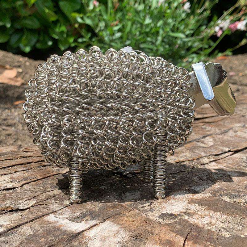 This fun wiggle metal lamb is a lovely alternative ornament and is made from stretched and coiled wire cross-wrapped around and frame and then nickel-plated. There is also a wiggle sheep which goes together perfectly. Arrange by the fireplace or on a shelf or mantelpiece for a fabulous display.  Also available in other designs. Handmade so each may vary slightly.